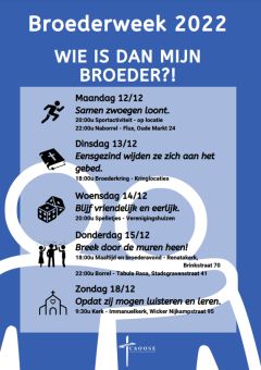 Wij hopen u natuurlijk tegen te komen op de activiteiten tijdens de broederweek.